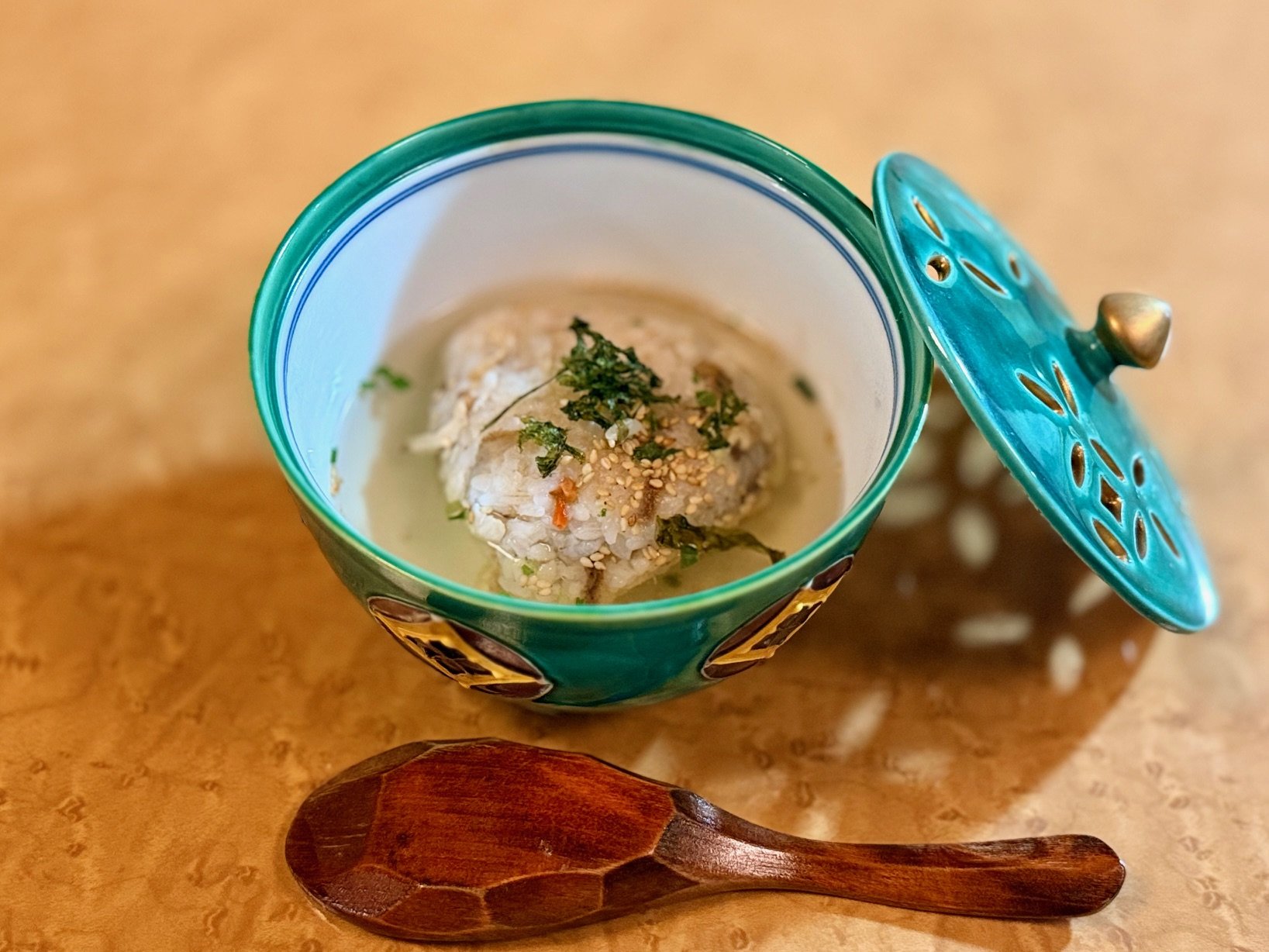 群馬県産のこんにゃくと、瀬戸内海の江田島産の鯛を使った 熱々の鯛めし茶漬け。